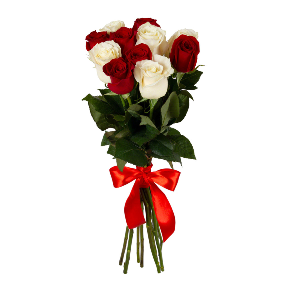Сочетание красных и белых роз в одном букете создает удивительную гармонию.